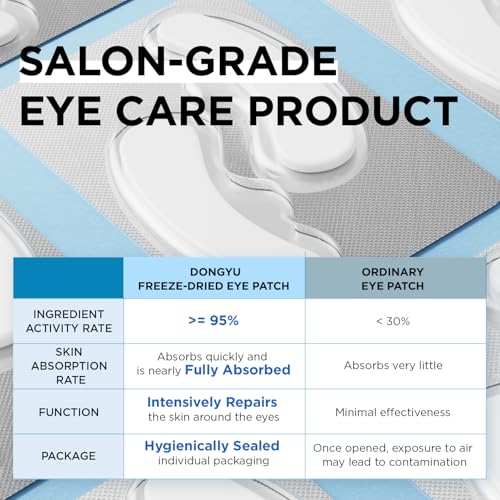 - Innovative -49°F Freeze-Drying Technology: Dongyu Collagen Under Eye Patches preserve maximum ingredient activity, locking in freshness and rejuvenation. Ideal for office workers, frequent makeup users, and night owls, this advanced technology ensures that the product retains its potency and effectiveness. It provides a revitalizing experience that combats the signs of fatigue and aging, diminishes dark circles and eye bags, making it perfect for those with busy lifestyles or who need a quick pick-me-up.